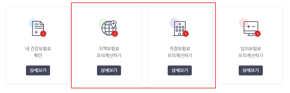 직장가입자로 분류되는 직장인들은 직장보험료 모의계산하기 메뉴를 선택해주세요.