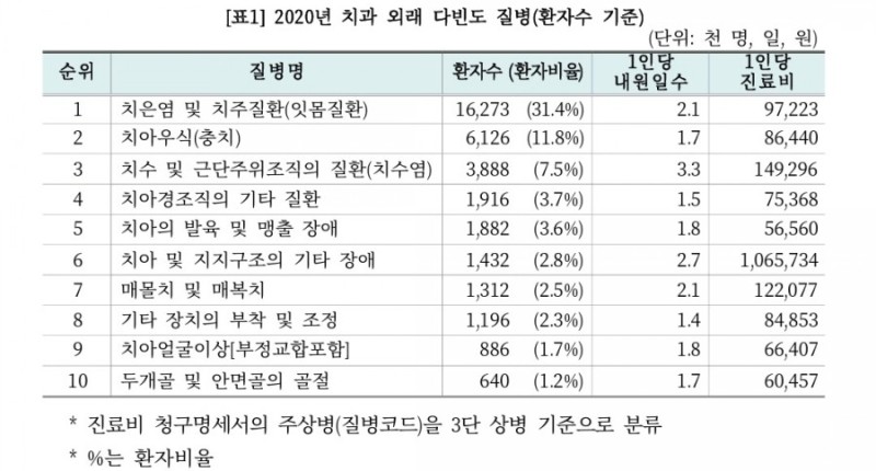 건강보험 치과 다빈도 질병과 진료행위 분석결과 - 건강보험 심평원일반 정보 2024. 1. 5. 21:01