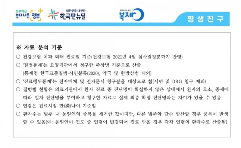 - 건강보험 치과 외래 진료 1인당 평균 3.4일 (10대 2.5일, 70대 4.5일) 방문