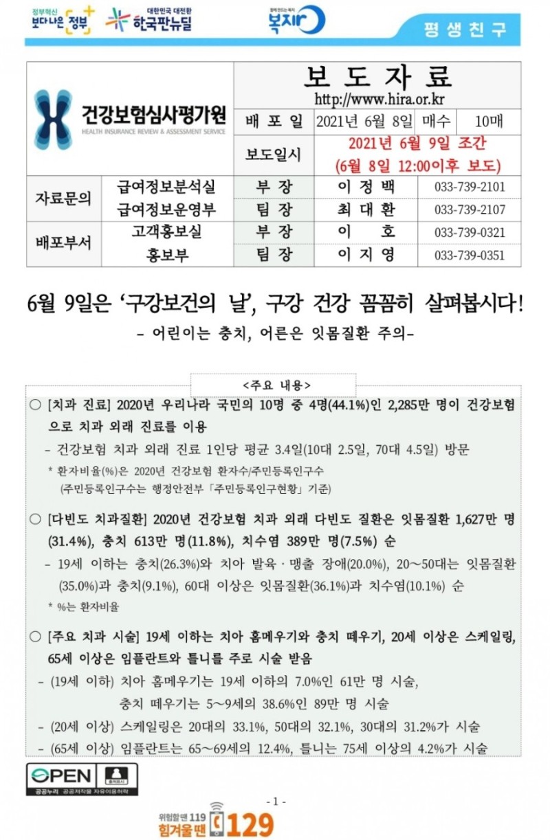 6월 9일은 ‘구강보건의 날’, 구강 건강 꼼꼼히 살펴봅시다!