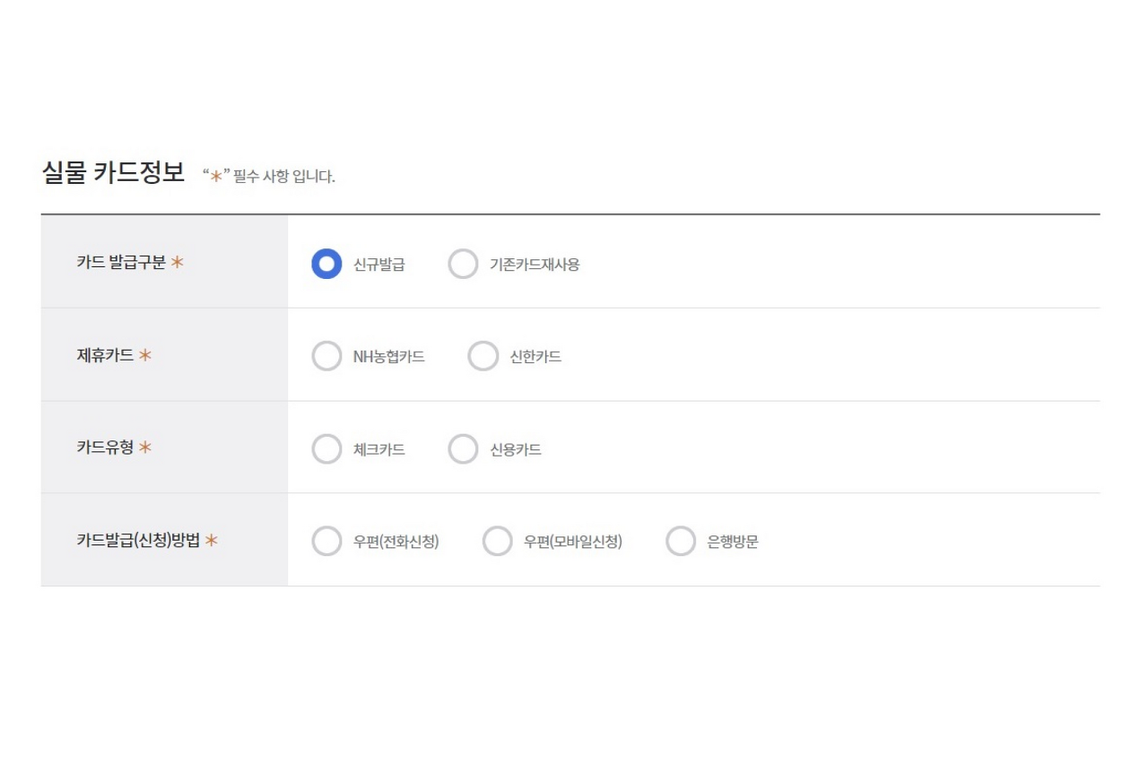 바로 실물 카드 정보 입력! 내일배움카드는 NH농협카드와 신한카드에서만 발급이 가능한데요. 일반적으로 신용카드의 혜택이 체크카드보다 좋은 것은 사실입니다. 제휴사별, 그리고 신용카드와 체크카드의 혜택을 비교하여 본인에게 맞는 카드로 신청하시기 바랍니다.