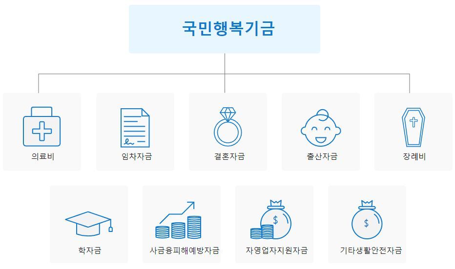 국민행복기금 소액대출은 의료비, 임차자금, 결혼자금, 출산자금, 장례비, 학자금, 사금융피해 예방 자금, 자영업자지원자금, 기타 생활 안정자금의 용도로 사용하실 수 있습니다.