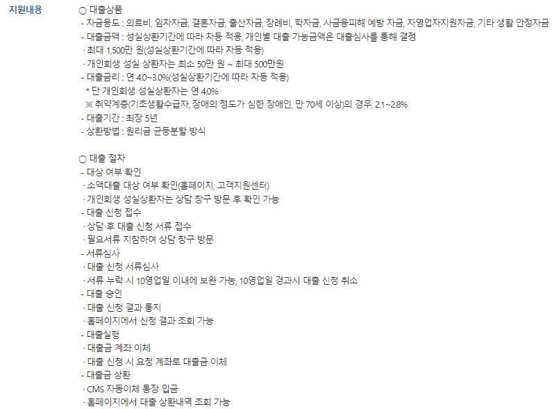 3. 국민행복기금 소액대출 상품정보 요약정리