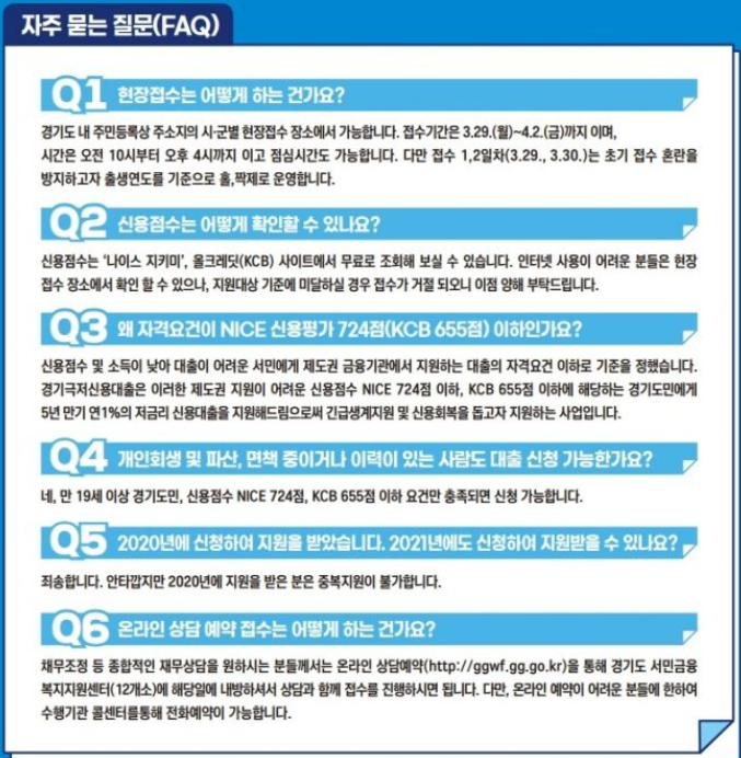 • 극저신용 대출(경기도) 한도, 금리, 자격조건, 신청방법, 문의처 총정리