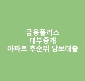 1. 금융플러스 대부중개 아파트 후순위 담보대출 총정리