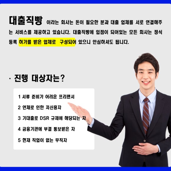 주로 본인이 가지고 있는 조건이 좋지 못한 상황이거나 직업이 없고 재직 또는 소득에 대한 증명 서류를 제출하지 못하는 경우인 분들이라면 한도가 나오는 곳을 찾는게 쉽지 않아 불법적인 운영을 하는 업체의 덫에 걸릴 수 있어 특히 더 조심해야만 합니다.