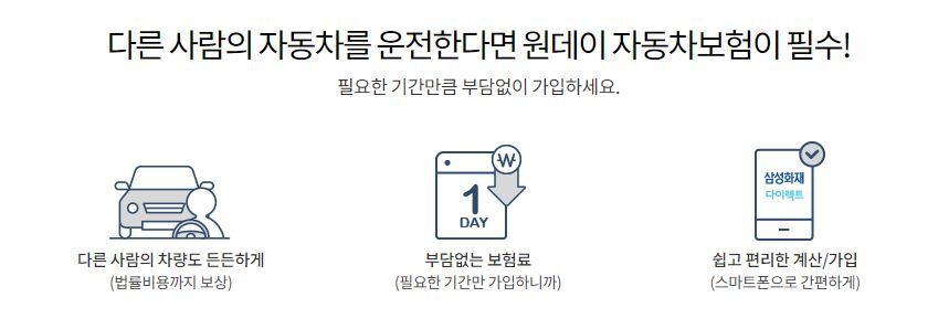 • 단기자동차보험 : 타인 차량 운전할 때 꼭 가입하세요
