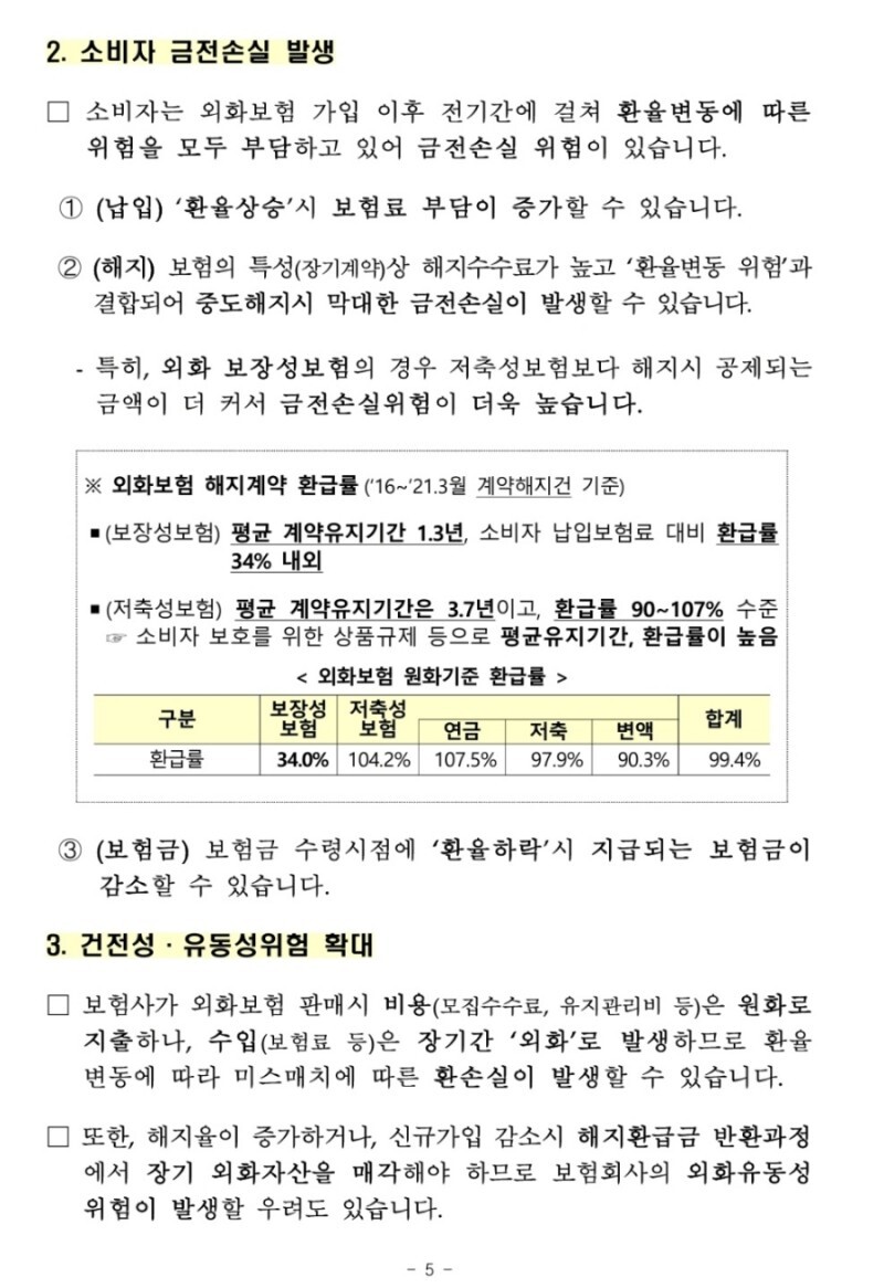 ※ 소비자들께서도 환율변동 위험을 정확히 인지하시고, 특히 외화종신보험 등 보장성보험은 꼭 필요한 경우에 가입할 수 있도록 유의해주시기 바랍니다.