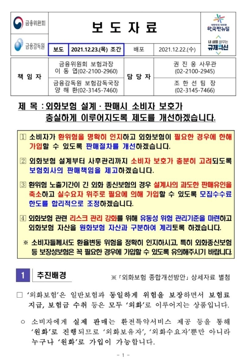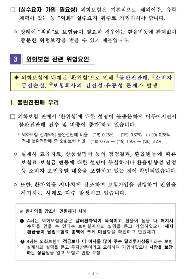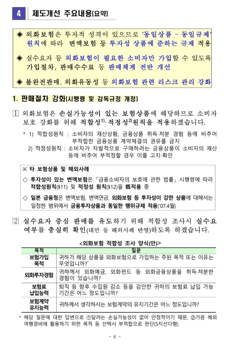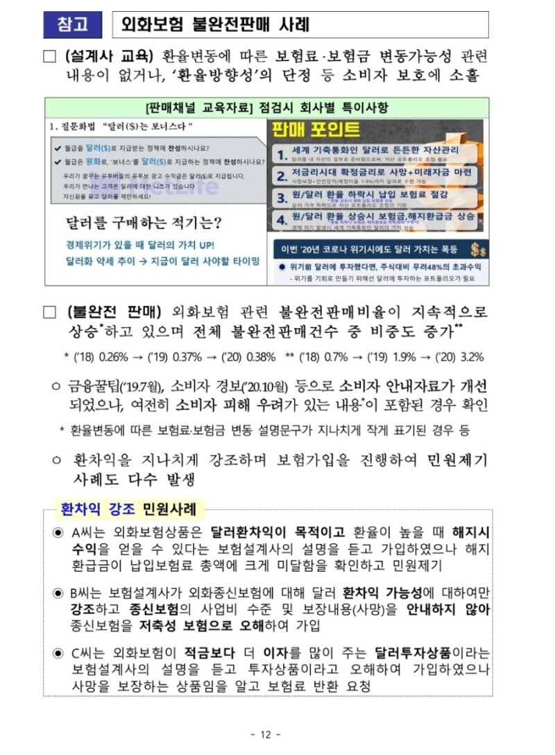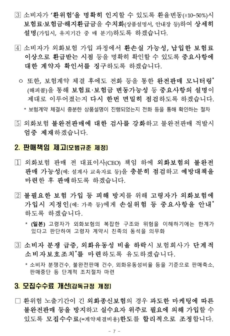 외화보험 설계,판매시 소비자 보호가 충실하게 이루어지도록 제도를 개선하겠습니다. - 금융감독원 (별첨) Download