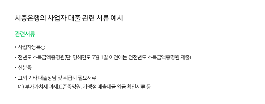 앞서 말씀드렸듯이 개인사업자를 대상으로 한 대출이라고 하더라도 대출을 해주는 은행, 대출상품의 종류, 대출 신청자의 재정 상황 등에 따라 준비 서류는 조금씩 달라질 수 있습니다.