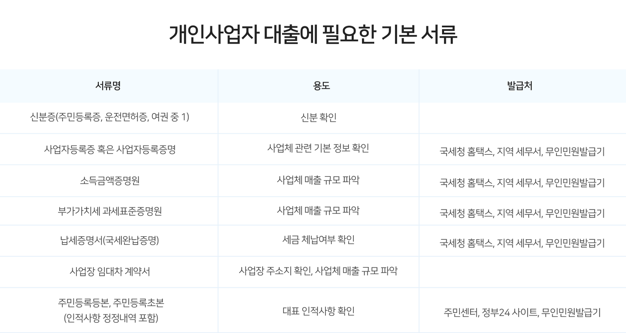 나아가 글의 뒷부분에서는 예비 창업자들을 대상으로 한 특화 대출상품에 대해서도 알아보겠습니다.1. 개인사업자 대출에 필요한 기본서류