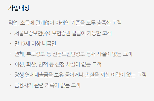 - 직장인, 개인사업자, 자영업자, 프리랜서, 주부, 계약직 근로자, 파견근무자 등 신청 가능