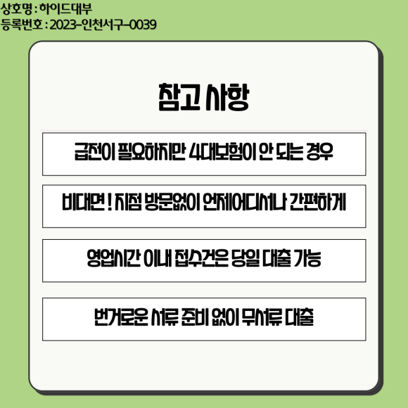 둘째, 현실적으로 내가 어떤 상황에 처해있고 그 상품을 감당할 수 있는가를 고민해야 합니다. 소액이라 해도 무직자라면 이자가 상당한 부담으로 다가올 수 있습니다. 그러니 향후 경제 활동이 가능한가, 담보물을 처분하여 감당할 수 있는가를 전부 판단하시길 바랍니다. 셋째, 미상환 시에 불이익을 어떻게 받을 수 있는지를 사전에 확인하여 인지하고 계셔야 합니다. 신용등급은 우리가 경제 활동함에 있어 굉장히 중요하게 고려되는 부분이니 불필요하게 불이익을 당하는 일이 없도록 해야 합니다.