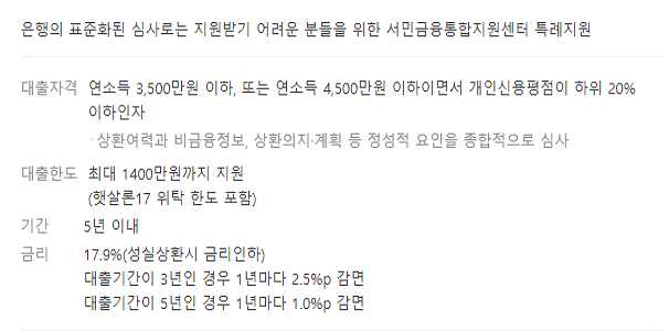 햇살론17 특례보증 대출자격조건, 대출한도, 기간, 금리