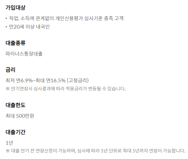 그럼 무직자도 이용 가능한 소액 마이너스 통장 대출의 자격조건, 대출한도, 금리 등에 대해 알아보도록 하겠습니다.