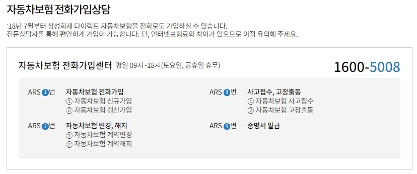 2. 전화로 삼성 자동차보험에 가입하려면 1600-5008로 전화하시면 콜센터로 바로 연결됩니다.
