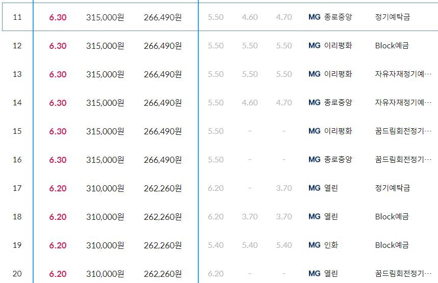 1. mg 새마을금고 정기예금 금리(지점별 금리비교)