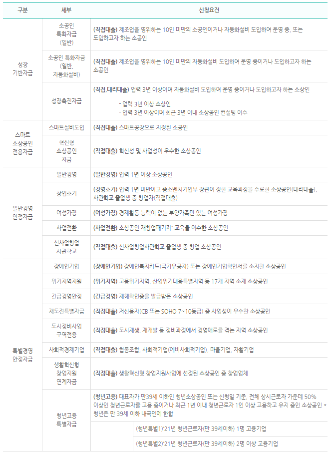 - 장애인, 사업전환자금, 청년고용특별자금 – 최대 1억원