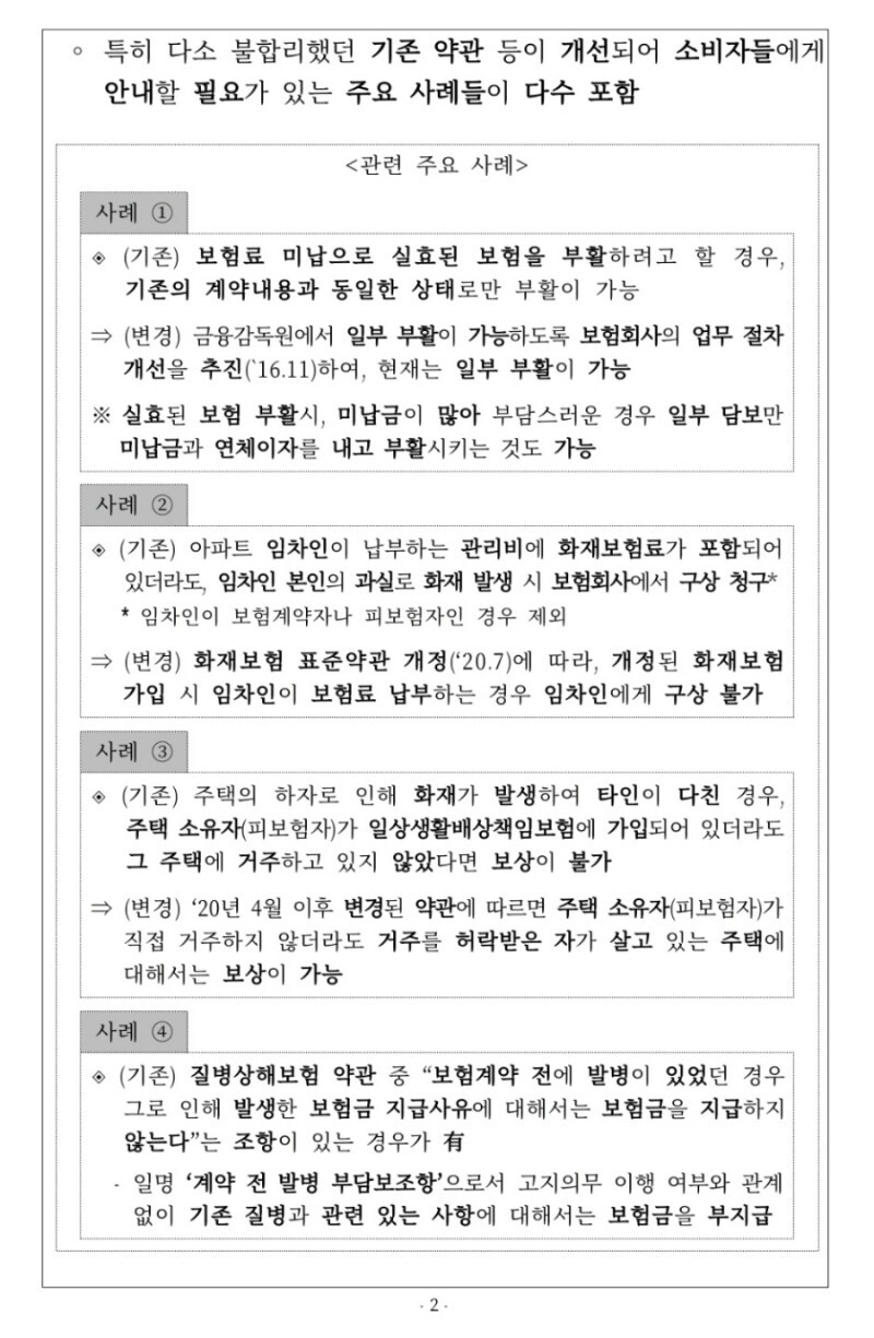 ◈ 특히 일부 불합리했던 기존 약관이 개선되었거나 소비자들에게 도움이 될 수 있는 사례들을 다수 포함하고 있어 소비자 이해도 제고 등의 효과 기대