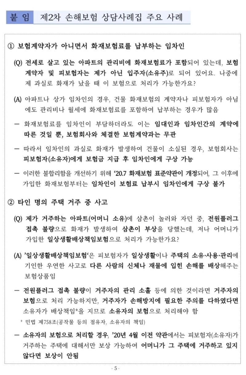 ◈ 또한 빈도 높은 상담건에 대한 모법답안을 제시하고 있어, 책자 무료배포를 통해 보험회사, 소비자단체 등의 일선 상담현장에서 유용하게 활용토록 할 예정