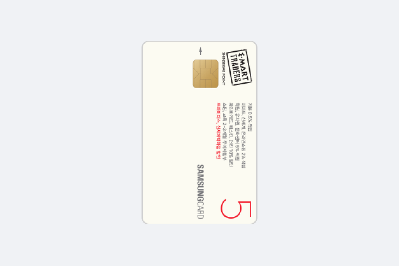 반면 트레이더스신세계 삼성카드 5는 신세계백화점 이용 시 결제금액의 2%를 삼성카드 빅포인트로 적립해 주는 신용카드입니다.