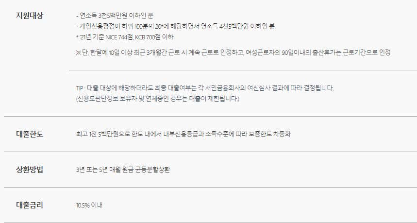 햇살론 생계자금 지원대상, 대출한도, 상환방법, 금리