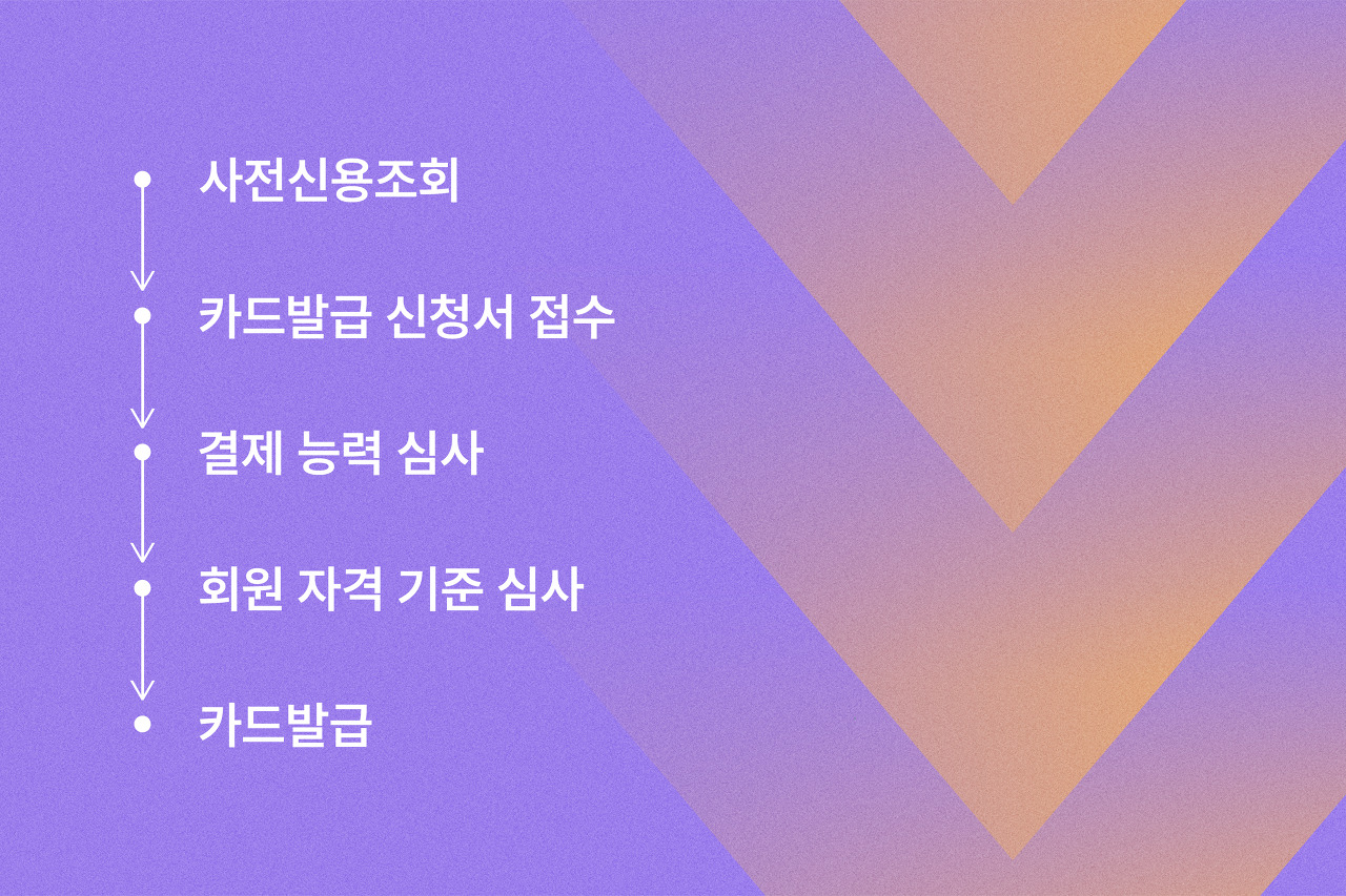 신용카드 발급 방법은 신용카드사마다 일부 차이가 있으나 신용조회, 신청서 접수, 결제 능력 심사, 회원 자격 심사, 카드 발급의 5단계를 거치는 것이 일반적입니다. 전체 신용카드 발급 기간은 신청 접수 후 신용카드 심사 기간을 고려하여 평균 5~7일이 소요(영업일 기준)되는 것으로 알려져 있습니다.- 그러나 최근에는 디지털 기술의 발전으로 인해 신용카드 심사 기간이 대폭 감소하여 모바일 카드 경우 최단 1시간 안에 발급 가능합니다. 최근의 모바일 카드는 온라인 결제 뿐만 카드사의 결제 App을 이용하면 오프라인 결제도 가능하므로 급하게 결제가 필요한 분들은 모바일 카드 발급을 활용해 보세요.