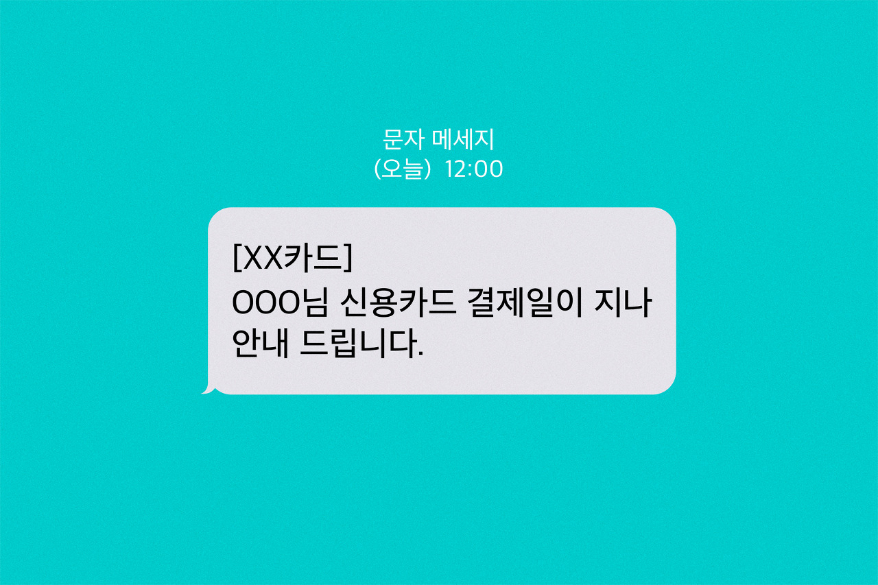 카드 대금 나가기 전, 카드 대금 빠져나가는 통장 잔액을 확인하시도록 미리 알림을 드려요. 연체되지 않도록 통장을 미리 채워둡시다.
