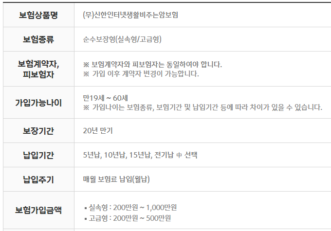 1. 신한생명 생활비 주는 암보험 가입조건