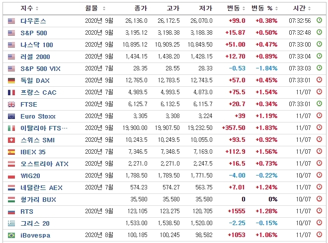 정확히 말하면 실시간 미국선물지수를 볼 수 있는게 아니라 해외증시의 주요정보들을 볼 수 있습니다. 네이버 금융은 실시간으로 정보를 제공하지 않지만 사용자 친화적인 UI로 구성되어 있기 때문에 처음 이용하는 사람들도 큰 거부감 없이 이용할 수 있습니다. 특히 네이버 포털을 많이 사용하는 한국인인 경우 더욱 쉽게 사용할 수 있습니다.