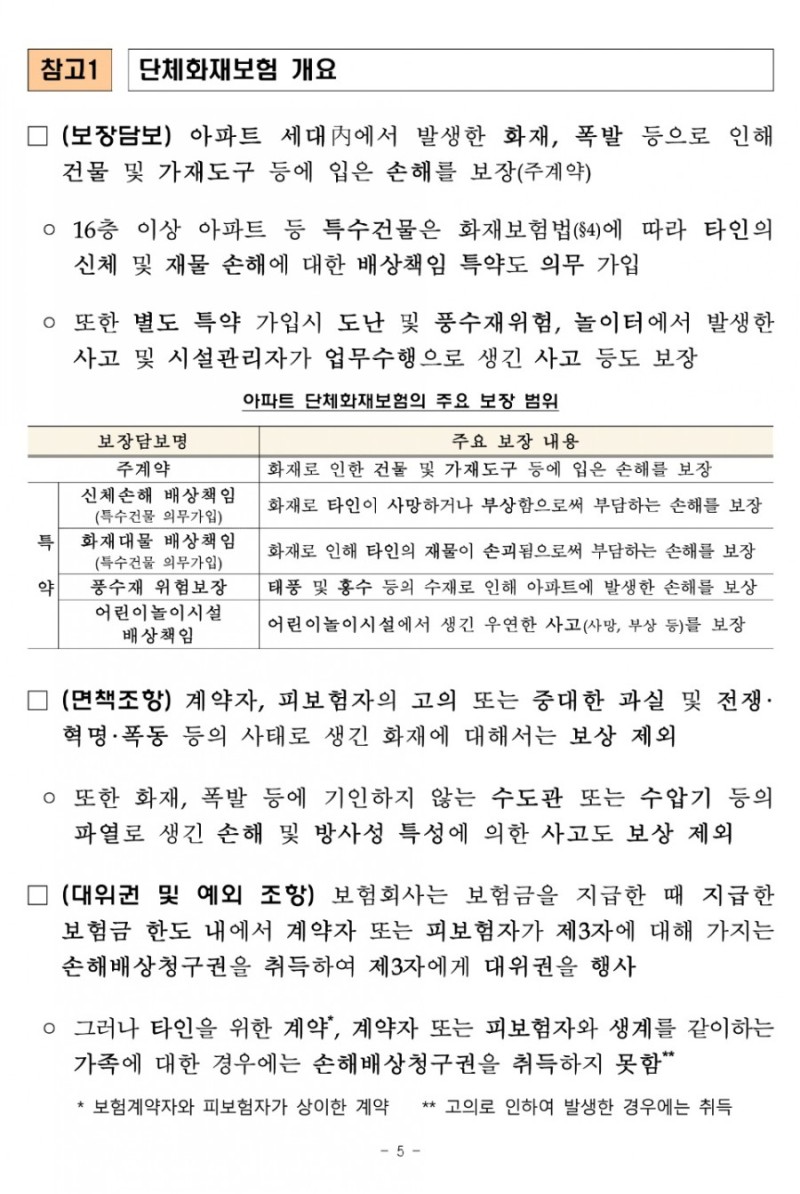 아파트 임차인 보호를 위한 화재보험 약관 개선 추진 - 금융감독원일반 정보 2024. 1. 5. 18:22