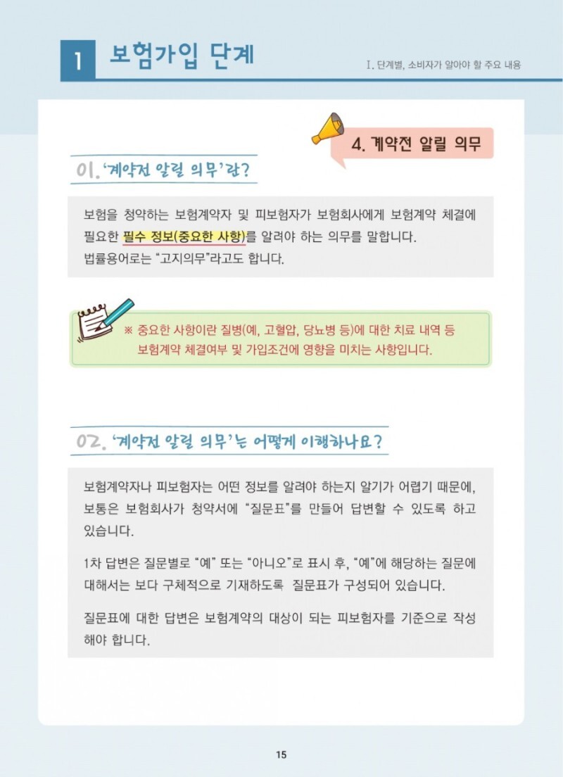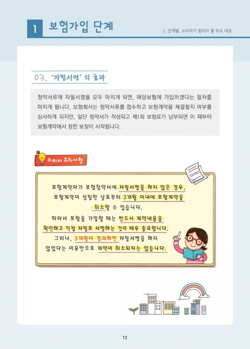 이와 더불어 협회는 소비자들이 꼭 알아야 할 보험약관의 중요한 내용들을 알기쉽게 담아 소비자의 보험이해도를 한층 높이기 위해, 본 자료의 제작을 기획하게 되었습니다.