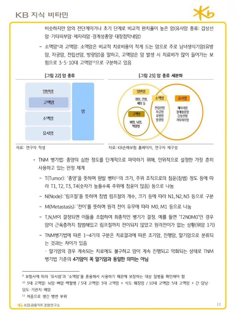 □ 암은 비정상적인 세포 성장으로 인하여 유발되는 질병으로 ‘양성종양’과 ‘악성종양’으로 구분되고, 보험회사는 보험금 지급 편의성을 위해 ‘일반암, 소액암, 유사암, 고액암’으로 분류