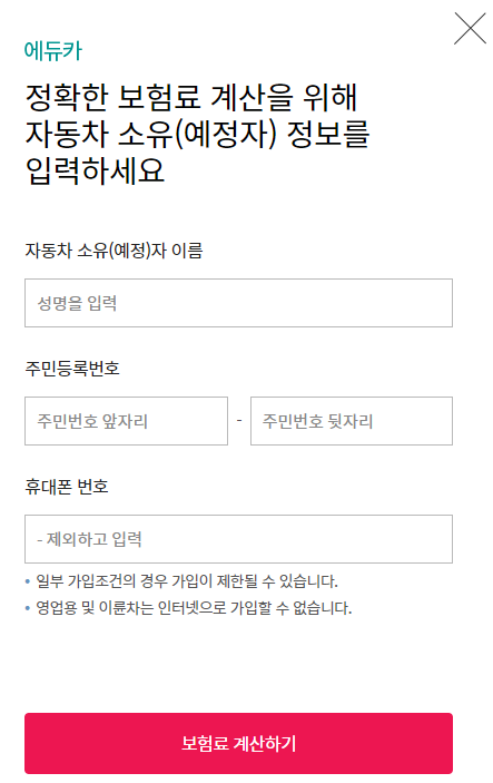 5. 에듀카 자동차보험 보험료 계산하는 방법