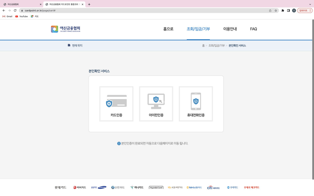 여신금융협회 카드포인트 통합조회 과정