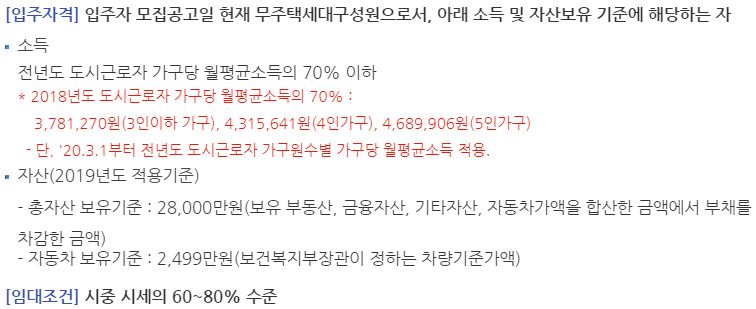 입주를 하시려면 소득조건과 자산조건을 만족해야지 입주가 가능합니다.
