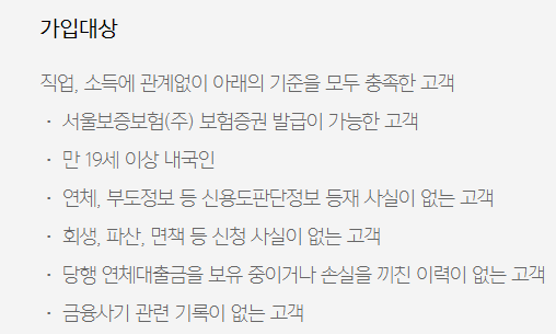 직장인, 개인사업자, 주부, 프리랜서, 계약직 근로자, 자유직업 소득자 분들을 대상으로 운영되고 있는 상품입니다.