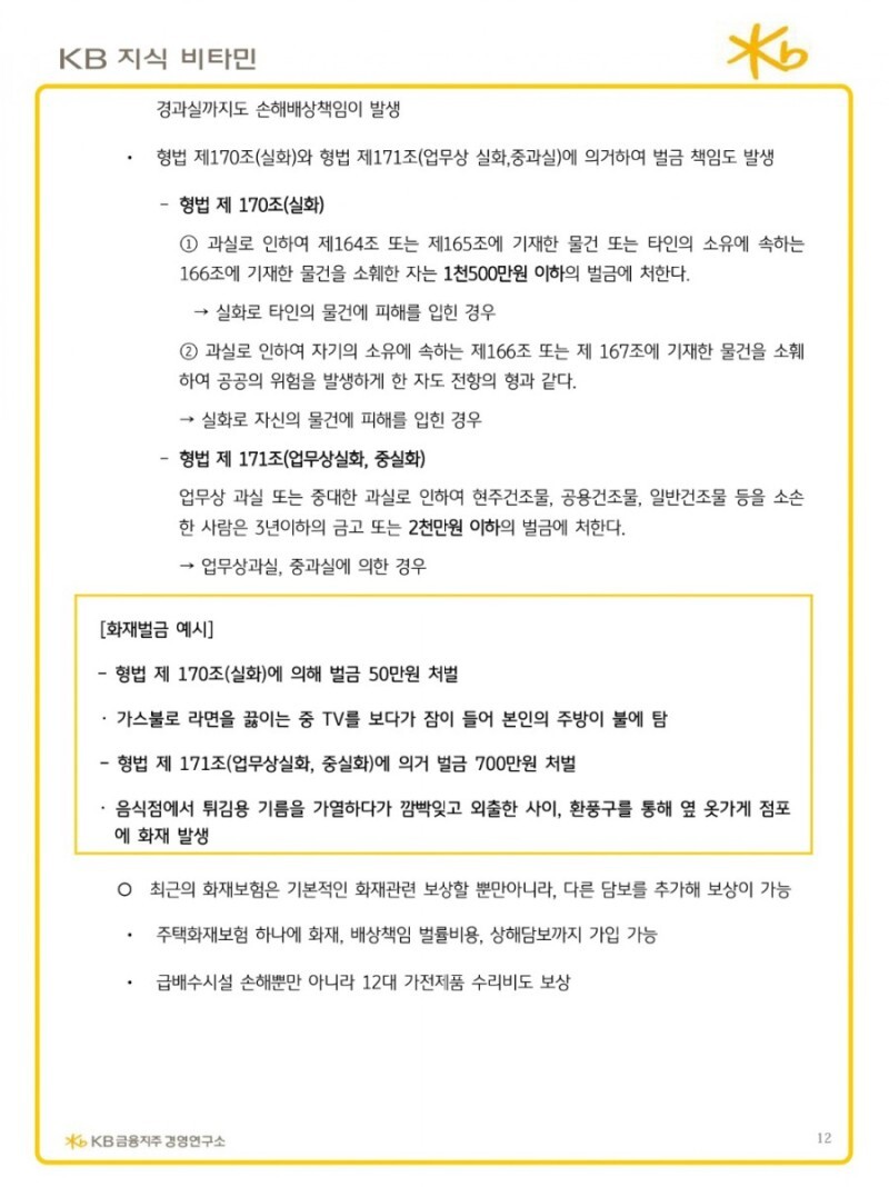 벌금 등의 보장을 위해서는 화재보험에 가입할 필요가 있음