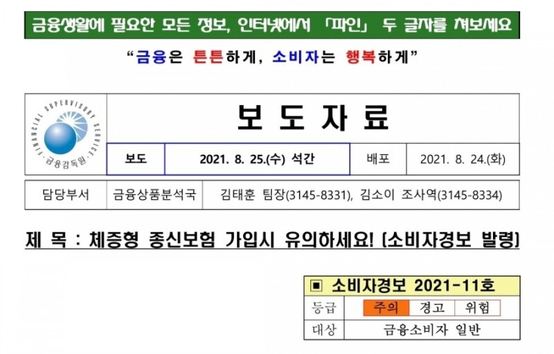 체증형 종신보험 가입시 유의하세요! (소비자경보 발령) - 금융감독원 Download