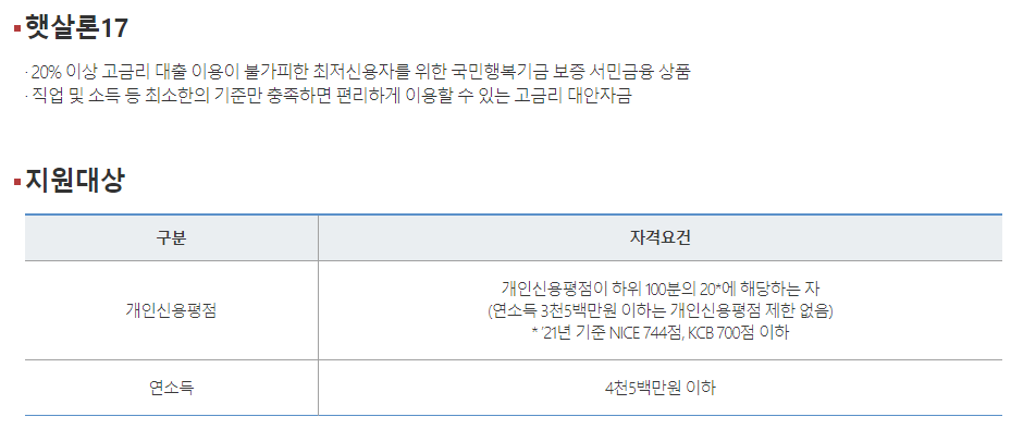 그리고 햇살론17을 이용하고 있는 분들은 햇살론15로 대환대출도 가능하니 참고하시기 바랍니다.