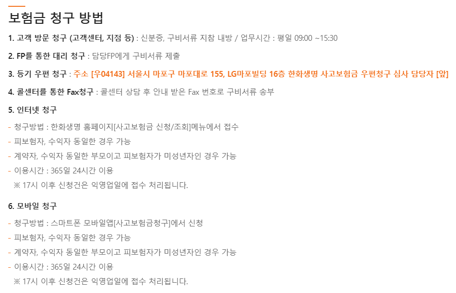 2. 한화생명 보험금청구를 하는 6가지 방법은 무엇일까?