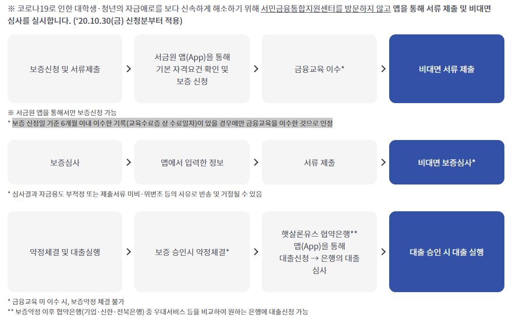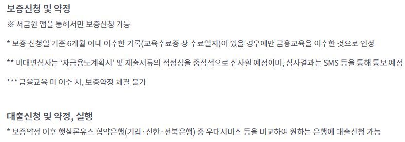 서민금융진흥원 앱을 통해서 보증신청을 하고, 금융교육을 이수하시고 서류를 제출하시면 됩니다.