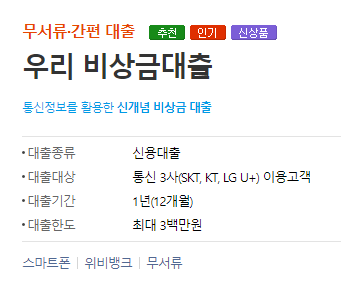 - 통신등급 대출 상품 총정리(농협 및 우리은행의 비상금대출)