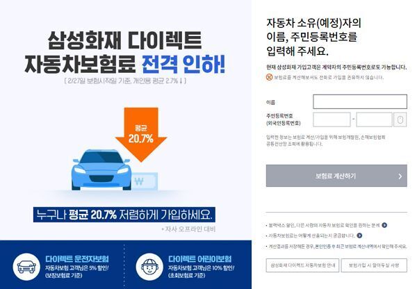 2. 자동차 보험료 계산기 바로가기(삼성화재 다이렉트)