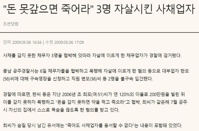 그리고 일수대출을 받는 분들은 기본적으로 경제적으로 힘든 상황이기 때문에 이러한 고금리대출을 현실적으로 감당하기 어려우실 겁니다.