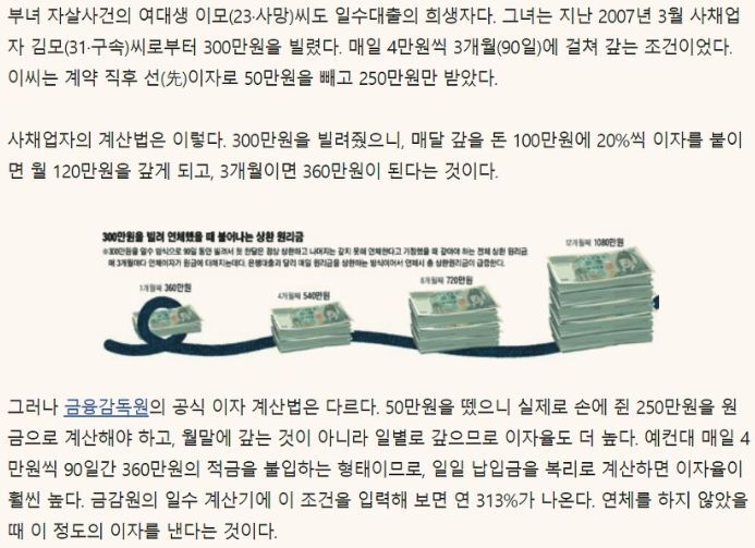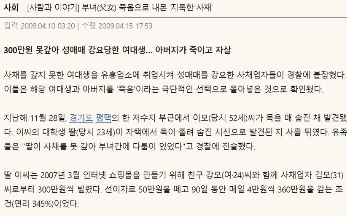 300만원 일수 대출 후기 – 300만원 일수 대출 받은 여대생의 끝