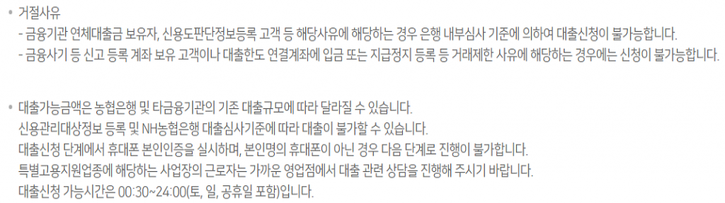 - 대출기간 – 1년~3년 이내 (연단위)