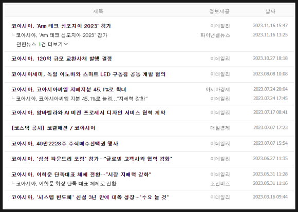 CoAsia SEMI(시스템반도체 디자인), ITSWELL(LED), 코아시아옵틱스(광학렌즈), CoAsia CM VINA(카메라모듈), CoAsia Elec.(삼성전자 공식 대리점) 등을 계열사로 보유.