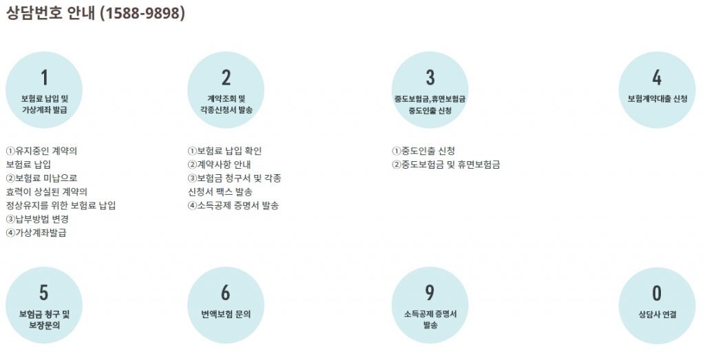 • 6번은 변액보험 문의를 하는 곳 입니다.