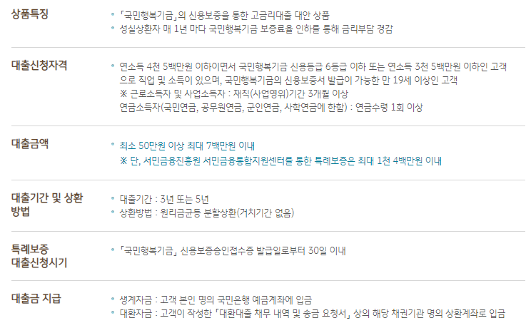 - 연소득이 4,500만원 이하이며 국민행복기금에서 지정한 신용등급이 6등급 이하인 경우